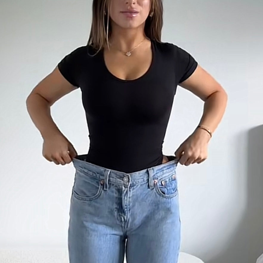 Il segreto risiede nel materiale unico che utilizziamo: estremamente elastico e incredibilmente morbido. Questa combinazione perfetta assicura che il body si adatti delicatamente alle tue forme, permettendoti di respirare liberamente e di muoverti senza restrizione, ideale per essere indossato tutto il giorno!